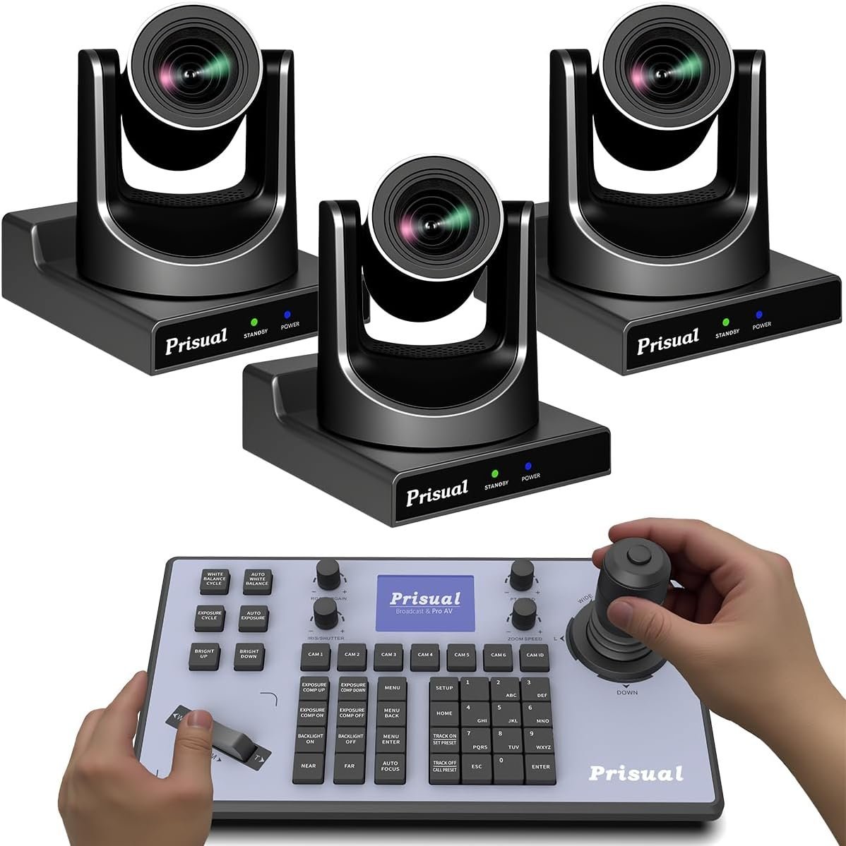 - Prisual PTZ Camera with AI auto-tracking supports NDI and excels in IP technology for real-time live streaming. It simplifies power, control, setup, and previews through a single Ethernet cable, reducing installation costs. it offers advanced tracking modes such as Presenter Mode, Zone Mode, and Frame Mode. Ideal for broadcasting, live streaming, and recording, Compatible with OBS, vMix, Zoom, Microsoft Teams, Skype, and NDI HX video production software, it is particularly well-suited for church